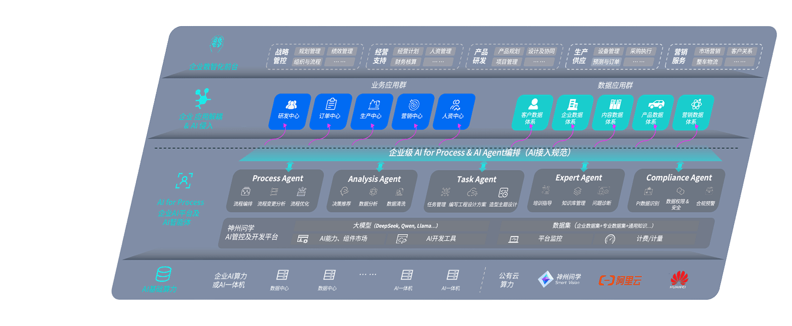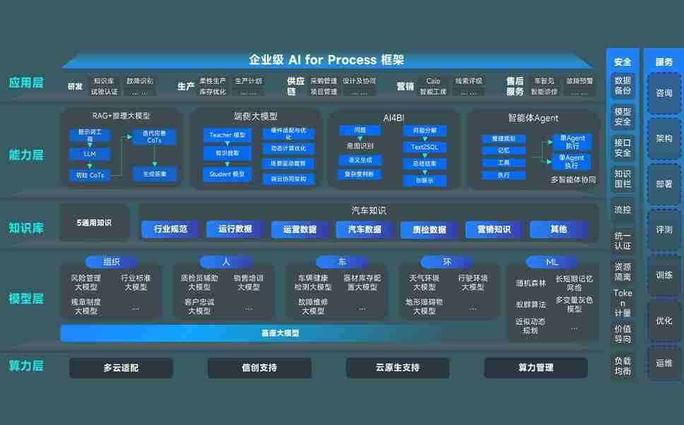 端到端的一站式AI工作空间深度融合了从企业战略规划到日常经营的全流程业务板块,,,,定向解决车企内部领域多、、部门多、、、链条长、、、、场景碎片化等难题,,支持车企快速构建以AI为核心的生产力写作体系,,,,实现任务执行与AI能力的无缝集成与交互